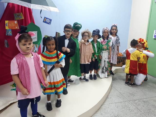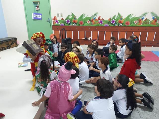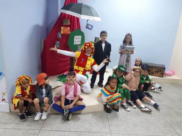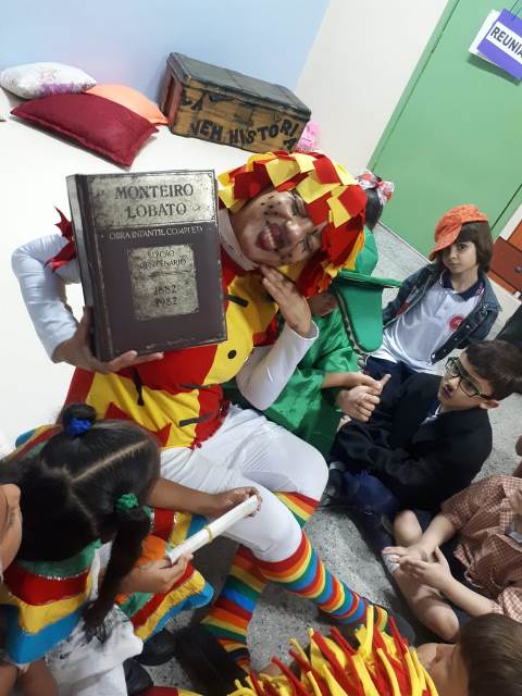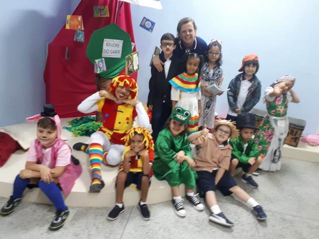 A turma do 1°ano D na biblioteca durante a Semana do Livro Infantil, homenageando Monteiro Lobato um colosso da literatura infantil brasileira. Os alunos participaram ativamente e mostraram muita desenvoltura e criatividade. Parabéns!