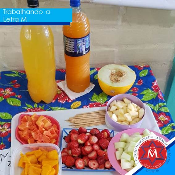 A turminha do Infantil IV da manhã, trabalhou a letra M. Em seguida saboreamos um delicioso espetinho de frutas, todas com a letra M.